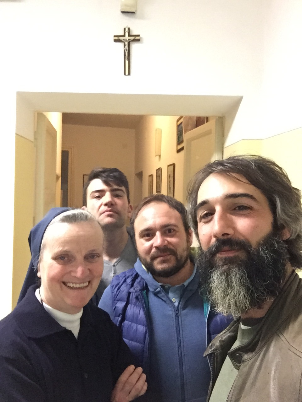 Ci ha spiegato che ogni anno sono sempre di più i pellegrini. Più di 2000 lo scorso anno e già 300 quest’anno. Ci ha raccontato di tante persone che le bussano alla porta. A tutte le ore. Lei però dopo cena sta fuori un’oretta. Entro le dieci tutti in casa se no lei non ti apre. Ci ha ricordato la casa famiglia. Appena aperta la porta ha guardato il suo furgoncino parcheggiato male e ci ha detto che tanto la multa il comune non gliela fa perché lei più volte aiuta l’amministrazione. Donne trovate sole ed in difficoltà che arrivano da lei.